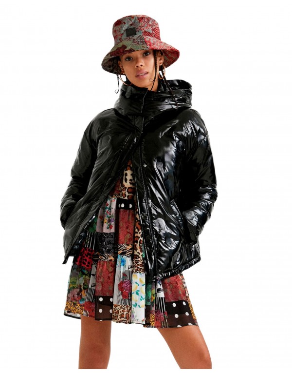 Brand: Desigual Gender: Women Type: Jackets Season: Fall/Winter PRODUCT DETAIL • Color: black • Pattern: plain • Fastening: zip and automatic buttons • Sleeves: long • Collar: hood • Pockets: front pockets COMPOSITION AND MATERIAL • Composition: -100% polyester • Washing: machine wash at 30°