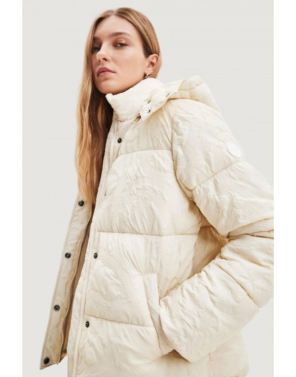 Brand: Desigual Gender: Women Type: Jackets Season: Fall/Winter PRODUCT DETAIL • Color: beige • Fastening: zip and button • Sleeves: long • Collar: hood • Pockets: front pockets COMPOSITION AND MATERIAL • Composition: -100% polyamide • Washing: dry cleaned