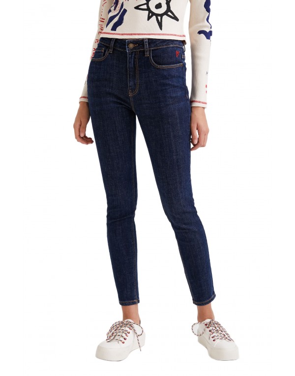 Brand: Desigual Gender: Women Type: Jeans Season: Spring/Summer PRODUCT DETAIL • Color: blue • Pattern: plain • Fastening: zip and button • Pockets: front and back pockets COMPOSITION AND MATERIAL • Composition: -90% cotton -2% elastane -8% polyester • Washing: machine wash at 30°