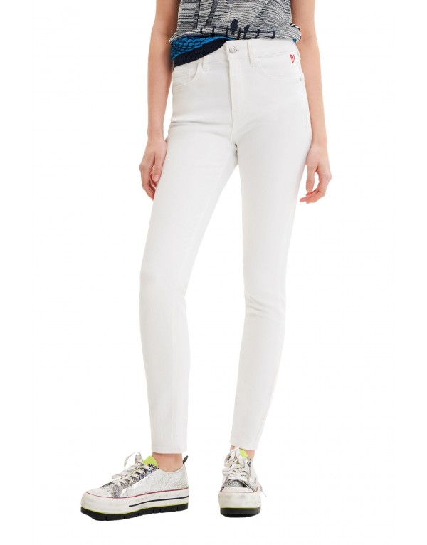 Brand: Desigual Gender: Women Type: Jeans Season: Spring/Summer PRODUCT DETAIL • Color: white • Pattern: plain • Fastening: zip and button • Pockets: front and back pockets COMPOSITION AND MATERIAL • Composition: -100% cotton • Washing: machine wash at 30°