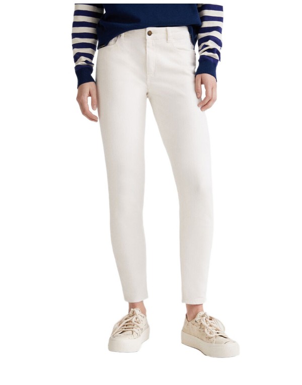 Brand: Desigual Gender: Women Type: Jeans Season: Spring/Summer PRODUCT DETAIL • Color: white • Pattern: plain • Fastening: zip and button • Pockets: front and back pockets COMPOSITION AND MATERIAL • Composition: -90% cotton -2% elastane -8% polyester • Washing: machine wash at 30°