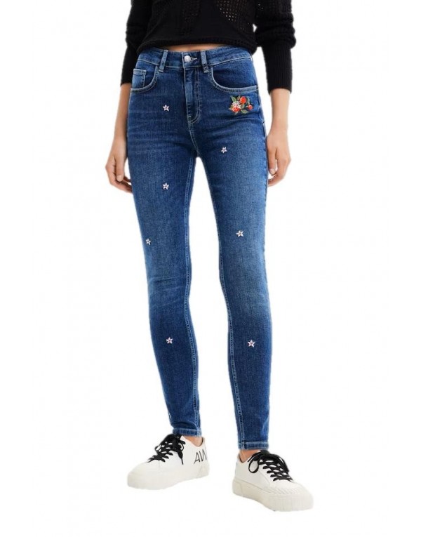 Brand: Desigual Gender: Women Type: Jeans Season: Spring/Summer PRODUCT DETAIL • Color: blue • Fastening: zip and button • Pockets: front and back pockets • Details: -worn out effect COMPOSITION AND MATERIAL • Composition: -98% cotton -2% elastane