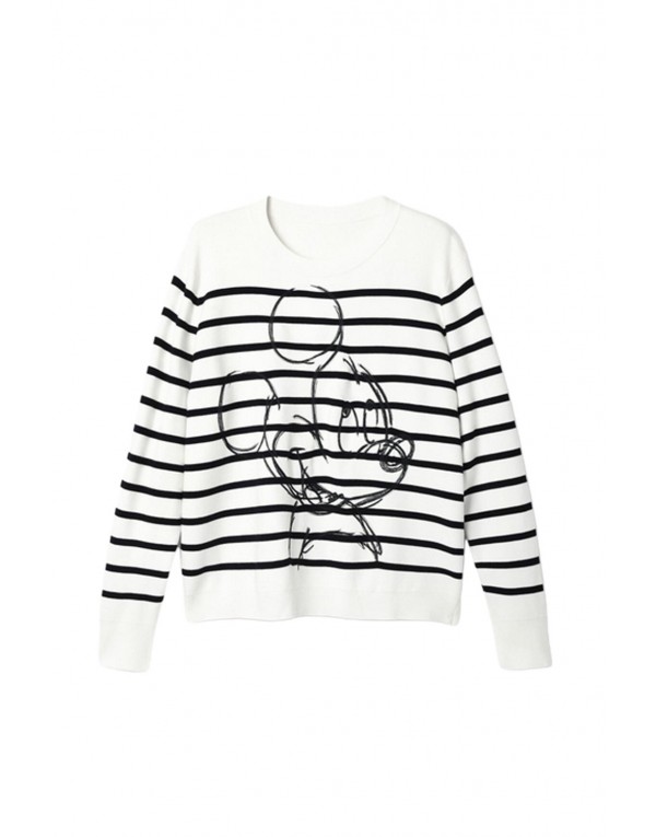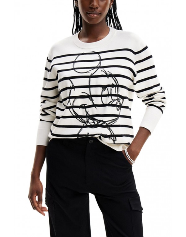 Brand: Desigual Gender: Women Type: Knitwear Season: Spring/Summer PRODUCT DETAIL • Color: white • Pattern: striped • Fastening: slip on • Sleeves: long • Neckline: round neck COMPOSITION AND MATERIAL • Composition: -28% polyester -72% viscose • Washing: machine wash at 30°