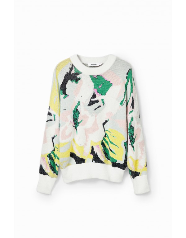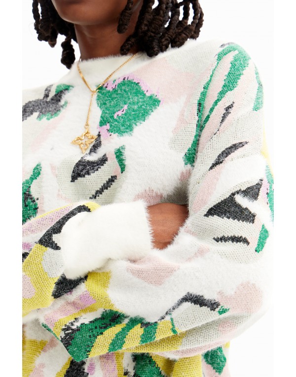 Brand: Desigual Gender: Women Type: Knitwear Season: Fall/Winter PRODUCT DETAIL • Color: white • Pattern: print • Fastening: slip on • Sleeves: long • Neckline: round neck COMPOSITION AND MATERIAL • Composition: -5% other fibres -40% polyamide -15% polyester -40% viscose • Washing: machine wash at 30°