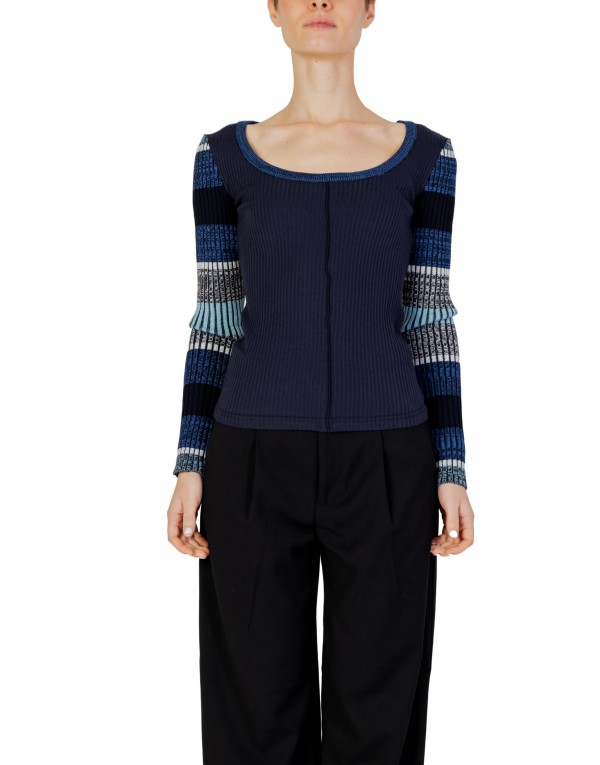 Brand: Desigual Gender: Women Type: Knitwear Season: Spring/Summer PRODUCT DETAIL • Color: blue • Pattern: plain • Fastening: slip on • Sleeves: long • Neckline: round neck COMPOSITION AND MATERIAL • Composition: -45% cotton -2% elastane -16% polyester -37% viscose • Washing: machine wash at 30°