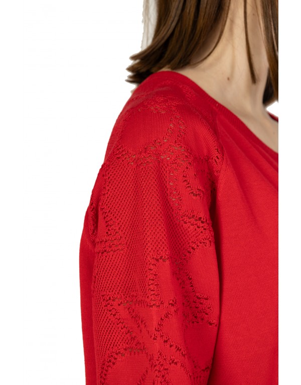 Brand: Desigual Gender: Women Type: Knitwear Season: Spring/Summer PRODUCT DETAIL • Color: red • Pattern: plain • Fastening: slip on • Sleeves: long • Neckline: round neck COMPOSITION AND MATERIAL • Composition: -45% cotton -10% polyester -45% viscose • Washing: machine wash at 30°