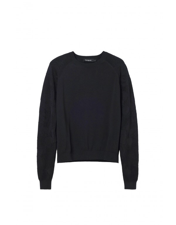 Brand: Desigual Gender: Women Type: Knitwear Season: Spring/Summer PRODUCT DETAIL • Color: black • Sleeves: long • Neckline: round neck COMPOSITION AND MATERIAL • Composition: -45% cotton -10% polyester -45% viscose • Washing: machine wash at 30°
