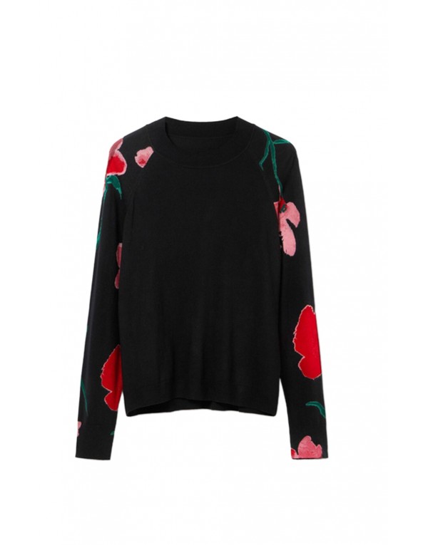 Brand: Desigual Gender: Women Type: Knitwear Season: Spring/Summer PRODUCT DETAIL • Color: black • Pattern: floral • Fastening: slip on • Sleeves: long • Neckline: round neck COMPOSITION AND MATERIAL • Composition: -20% polyamide -80% viscose • Washing: machine wash at 30°