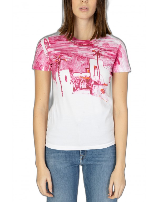 Brand: Desigual Gender: Women Type: T-shirts Season: Spring/Summer PRODUCT DETAIL • Color: pink • Pattern: coloured • Sleeves: short • Neckline: round neck COMPOSITION AND MATERIAL • Composition: -95% cotton -5% elastane • Washing: machine wash at 30°