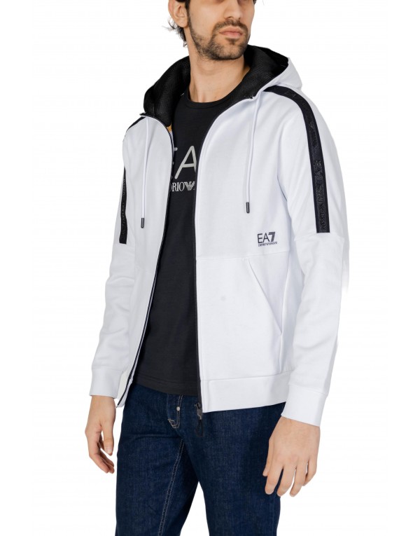 Brand: Ea7 Gender: Men Type: Sweatshirts Season: Spring/Summer PRODUCT DETAIL • Color: white • Pattern: print • Fastening: with zip • Sleeves: long • Collar: hood • Pockets: front pockets COMPOSITION AND MATERIAL • Composition: -100% cotton • Washing: machine wash at 30°