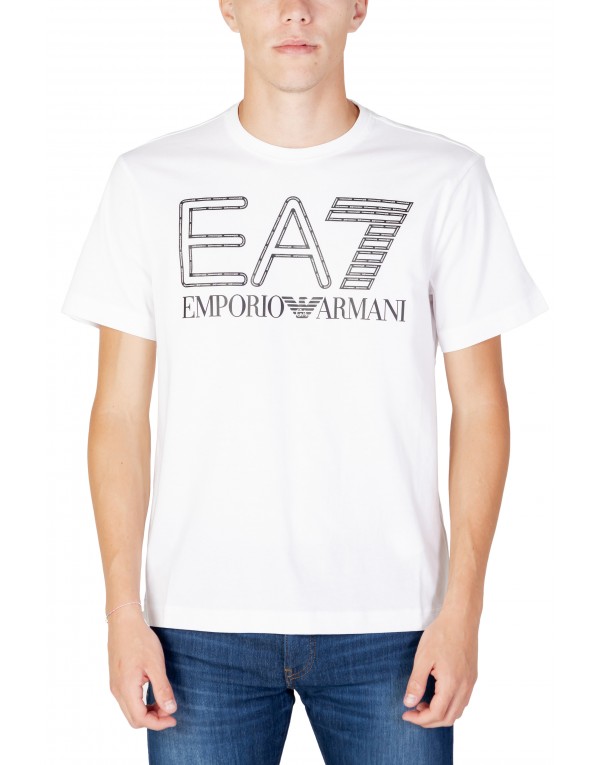 Brand: Ea7 Gender: Men Type: T-shirts Season: Fall/Winter PRODUCT DETAIL • Color: white • Pattern: print • Sleeves: short • Neckline: round neck COMPOSITION AND MATERIAL • Composition: -100% cotton • Washing: machine wash at 30°