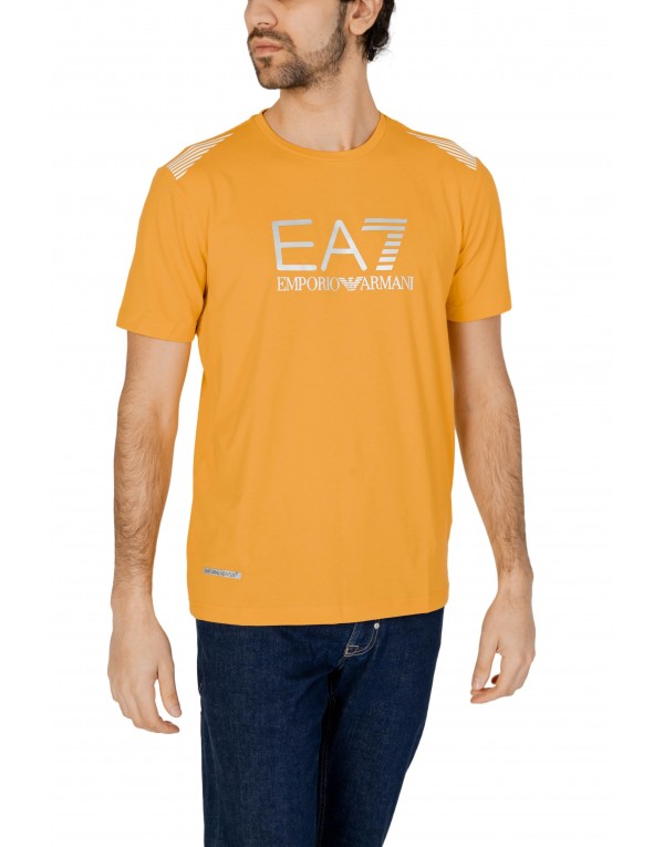 Brand: Ea7 Gender: Men Type: T-shirts Season: Spring/Summer PRODUCT DETAIL • Color: yellow • Pattern: plain • Sleeves: short • Neckline: round neck COMPOSITION AND MATERIAL • Composition: -42% cotton -5% elastane -53% polyester • Washing: machine wash at 30°