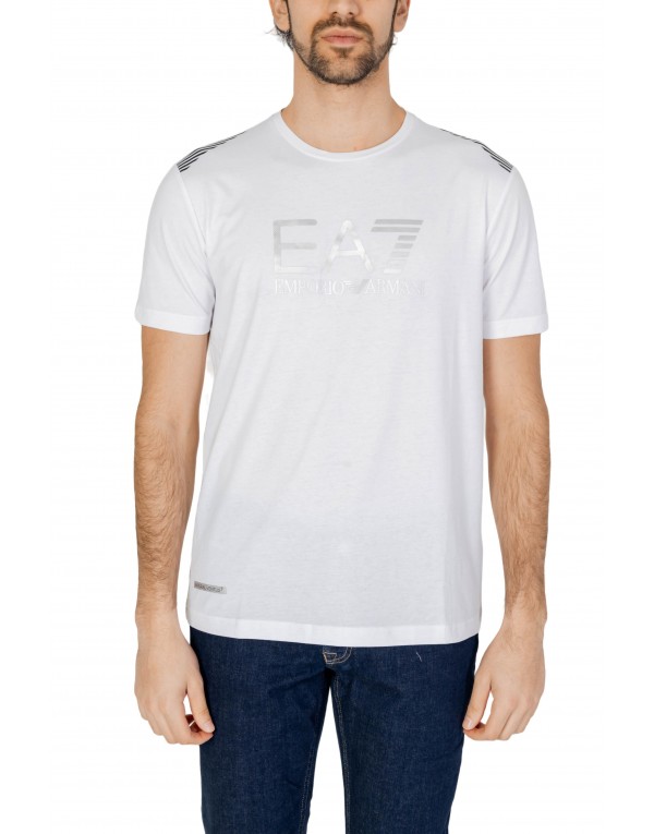 Brand: Ea7 Gender: Men Type: T-shirts Season: Spring/Summer PRODUCT DETAIL • Color: white • Pattern: print • Sleeves: short • Neckline: round neck COMPOSITION AND MATERIAL • Composition: -42% cotton -5% elastane -53% polyester • Washing: machine wash at 30°