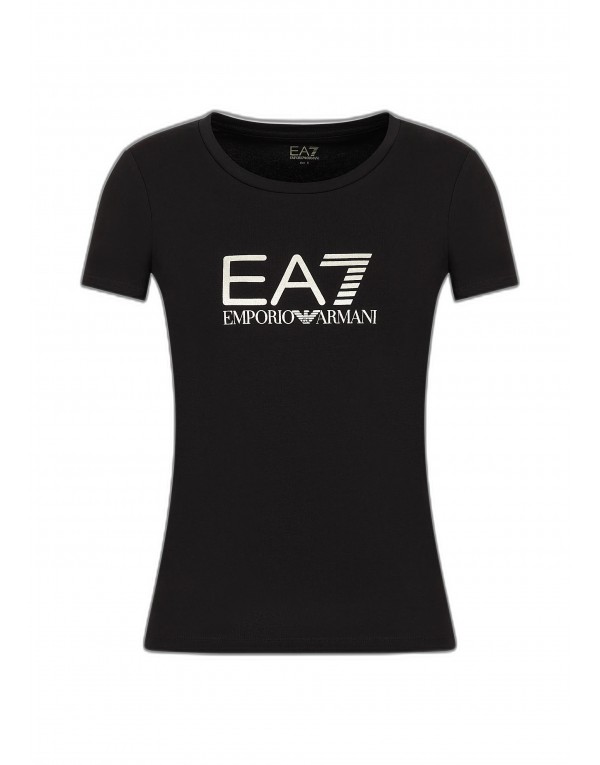 Brand: Ea7 Gender: Women Type: T-shirts Season: Spring/Summer PRODUCT DETAIL • Color: black • Pattern: print • Fastening: slip on • Sleeves: short • Neckline: round neck COMPOSITION AND MATERIAL • Composition: -95% cotton -5% elastane • Washing: machine wash at 30°