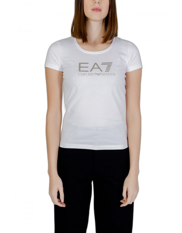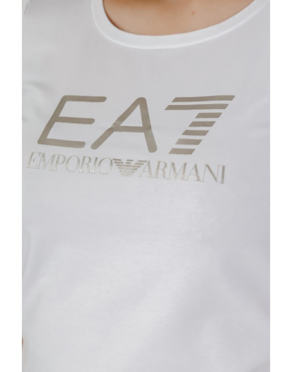 Brand: Ea7 Gender: Women Type: T-shirts Season: Spring/Summer PRODUCT DETAIL • Color: white • Pattern: print • Sleeves: short • Neckline: round neck COMPOSITION AND MATERIAL • Composition: -95% cotton -5% elastane • Washing: machine wash at 30°
