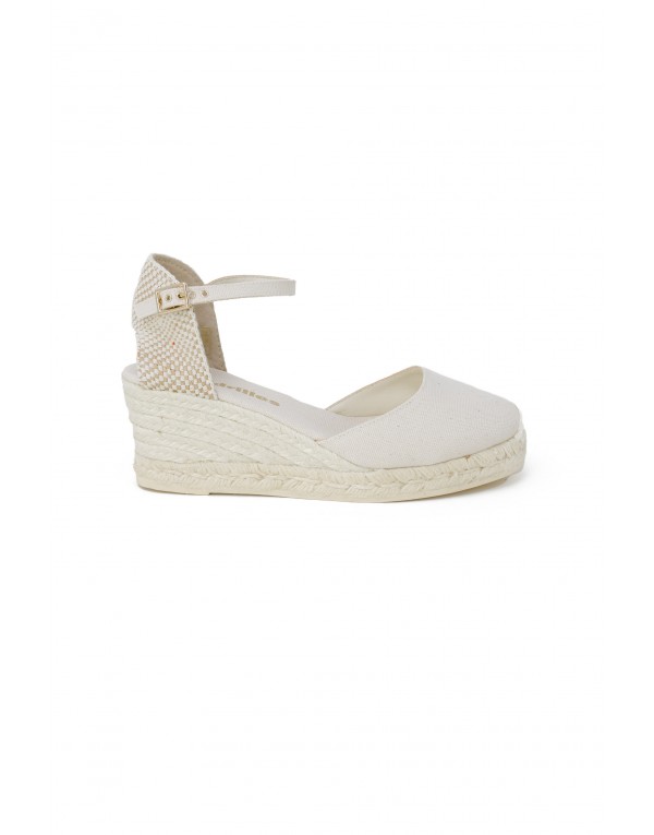 Brand: Espadrilles Gender: Women Type: Wedges Season: Spring/Summer PRODUCT DETAIL • Color: white • Pattern: plain • Fastening: laces • Sole: synthetics • Lining: textile • Size (cm): 6.5 COMPOSITION AND MATERIAL • Composition: -100% cotton • Material: textile