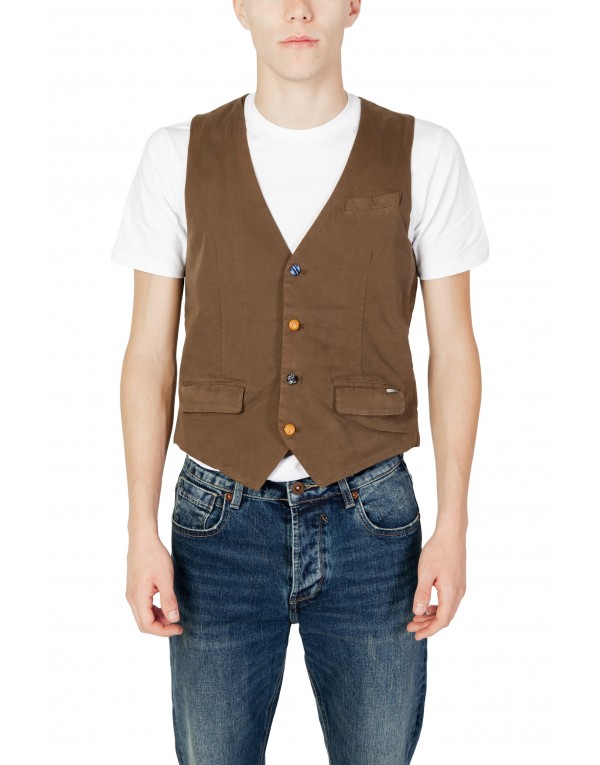 Brand: Gianni Lupo Gender: Men Type: Gilets Season: Fall/Winter PRODUCT DETAIL • Color: brown • Fastening: buttons • Sleeves: sleeveless • Neckline: v-neck COMPOSITION AND MATERIAL • Composition: -90% cotton -10% lycra • Washing: machine wash at 30°