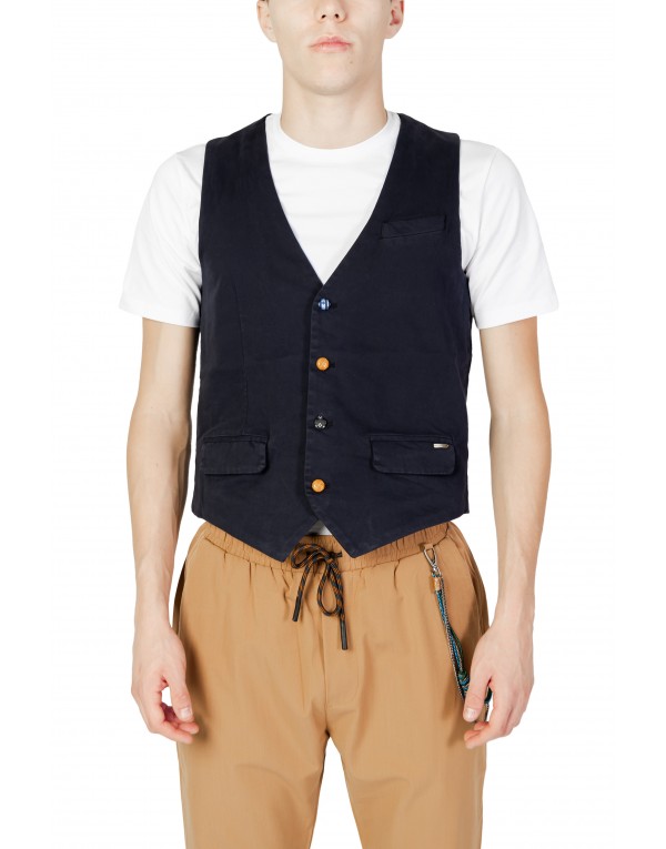 Brand: Gianni Lupo Gender: Men Type: Gilets Season: Fall/Winter PRODUCT DETAIL • Color: blue • Fastening: buttons • Sleeves: sleeveless • Neckline: v-neck COMPOSITION AND MATERIAL • Composition: -90% cotton -10% lycra • Washing: machine wash at 30°