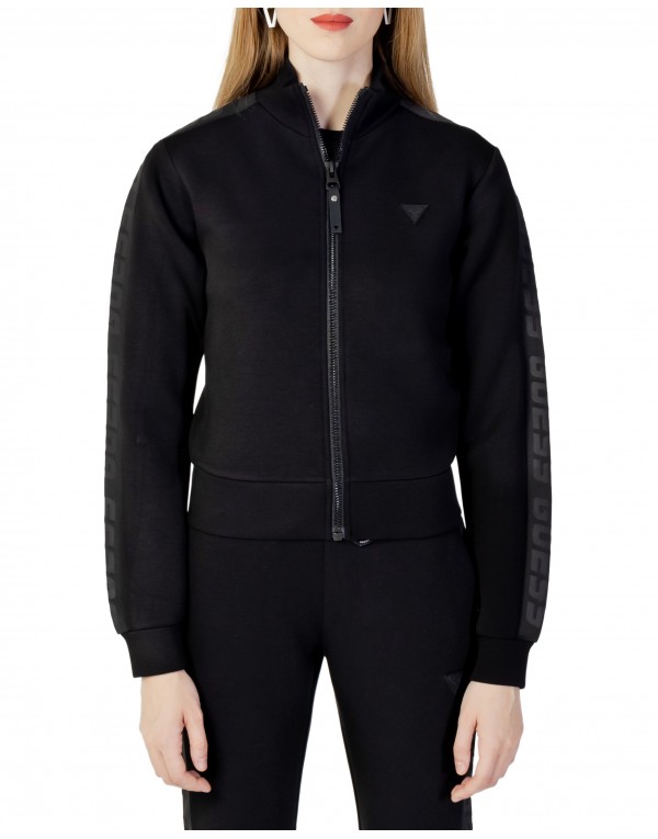 Brand: Guess Active Gender: Women Type: Sweatshirts Season: Fall/Winter PRODUCT DETAIL • Color: black • Pattern: plain • Fastening: with zip • Sleeves: long COMPOSITION AND MATERIAL • Composition: -8% lycra -15% polyester -77% viscose • Washing: machine wash at 30°