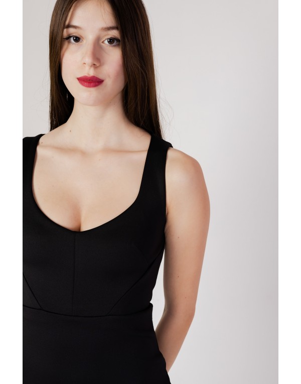 Brand: Guess Gender: Women Type: Dresses Season: Fall/Winter PRODUCT DETAIL • Color: black • Sleeves: straps COMPOSITION AND MATERIAL • Composition: -100% polyester • Washing: machine wash at 30°