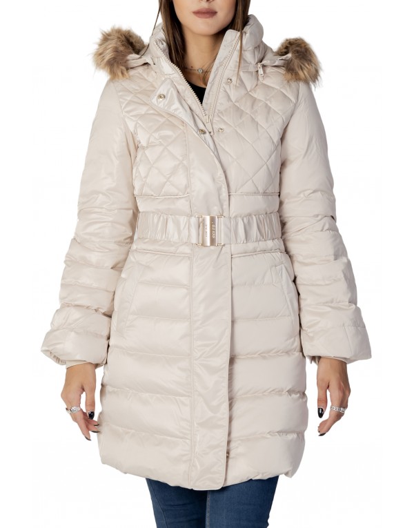 Brand: Guess Gender: Women Type: Jackets Season: Fall/Winter PRODUCT DETAIL • Color: beige • Pattern: plain • Fastening: zip and automatic buttons • Sleeves: long • Collar: hood • Pockets: front pockets COMPOSITION AND MATERIAL • Composition: -80% acrylic -13% other fibres -80% down -7% polyester • Washing: machine wash at 30°