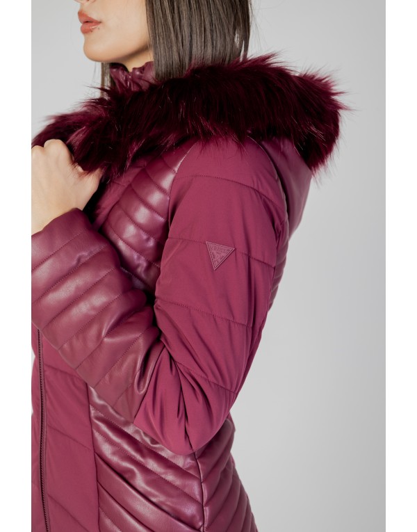 Brand: Guess Gender: Women Type: Jackets Season: Fall/Winter PRODUCT DETAIL • Color: bordeaux • Pattern: plain • Fastening: with zip • Sleeves: long • Collar: hood • Pockets: front pockets COMPOSITION AND MATERIAL • Composition: -100% polyester • Washing: dry cleaned