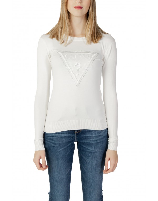 Brand: Guess Gender: Women Type: Knitwear Season: Spring/Summer PRODUCT DETAIL • Color: white • Pattern: plain • Fastening: slip on • Sleeves: long • Neckline: round neck COMPOSITION AND MATERIAL • Composition: -2% lycra -16% polyester -82% viscose • Washing: machine wash at 30°