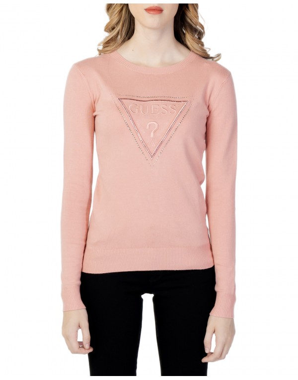 Brand: Guess Gender: Women Type: Knitwear Season: Fall/Winter PRODUCT DETAIL • Color: pink • Pattern: print • Sleeves: long • Neckline: round neck COMPOSITION AND MATERIAL • Composition: -2% elastane -16% polyamide -82% viscose • Washing: machine wash at 30°
