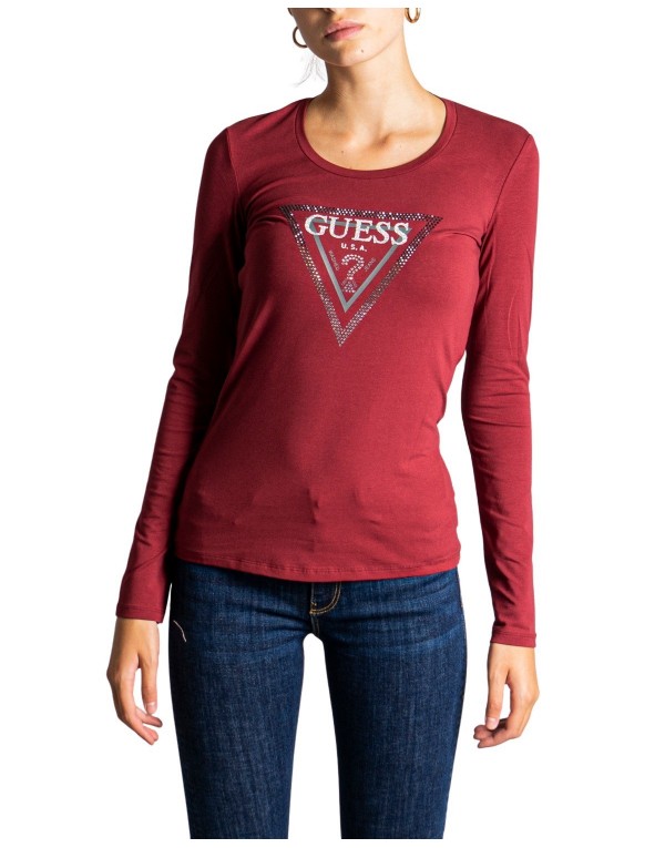 Brand: Guess Gender: Women Type: Knitwear Season: Fall/Winter PRODUCT DETAIL • Color: bordeaux • Pattern: print • Fastening: slip on • Sleeves: long • Neckline: round neck COMPOSITION AND MATERIAL • Composition: -100% cotton • Washing: machine wash at 30°