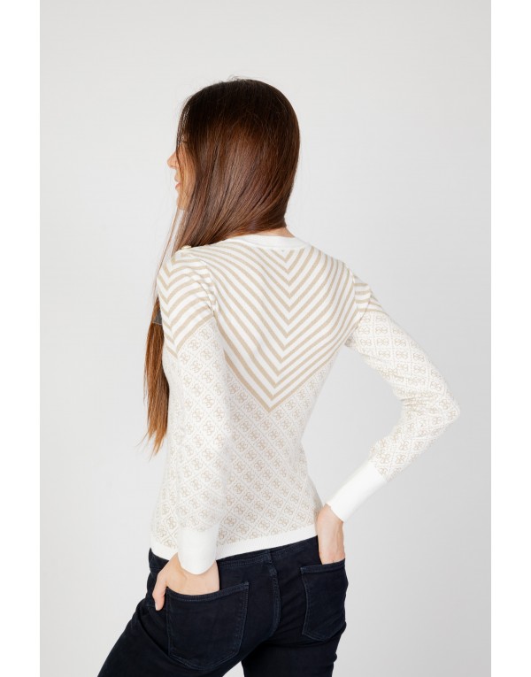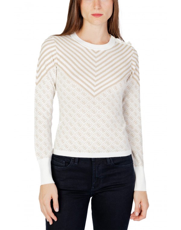 Brand: Guess Gender: Women Type: Knitwear Season: Fall/Winter PRODUCT DETAIL • Color: white • Pattern: plain • Fastening: slip on • Sleeves: long • Neckline: round neck COMPOSITION AND MATERIAL • Composition: -18% acrylic -5% wool -6% metal -16% polyamide -55% polyester • Washing: handwash