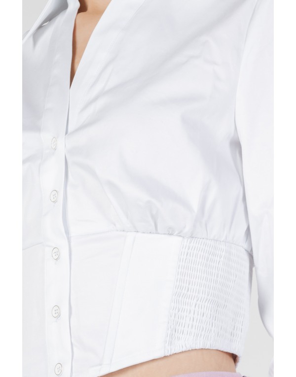 Brand: Guess Gender: Women Type: Shirts Season: Spring/Summer PRODUCT DETAIL • Color: white • Fastening: buttons • Sleeves: long • Neckline: v-neck • Collar: classic COMPOSITION AND MATERIAL • Composition: -97% cotton -3% elastane • Washing: machine wash at 30°