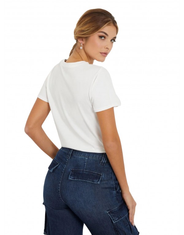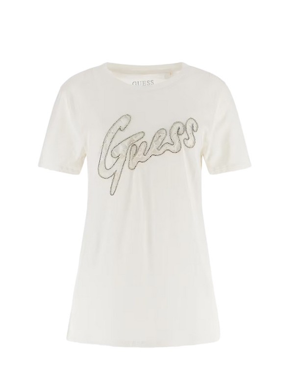 Brand: Guess Gender: Women Type: T-shirts Season: Spring/Summer PRODUCT DETAIL • Color: white • Pattern: print • Sleeves: short • Neckline: round neck COMPOSITION AND MATERIAL • Composition: -100% cotton • Washing: machine wash at 30°