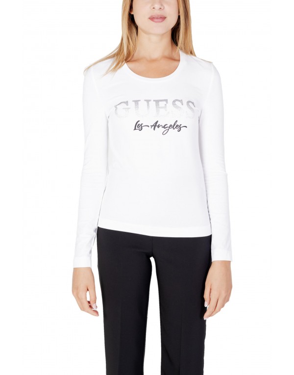 Brand: Guess Gender: Women Type: T-shirts Season: Fall/Winter PRODUCT DETAIL • Color: white • Pattern: print • Sleeves: long • Neckline: round neck COMPOSITION AND MATERIAL • Composition: -95% cotton -5% lycra • Washing: machine wash at 30°