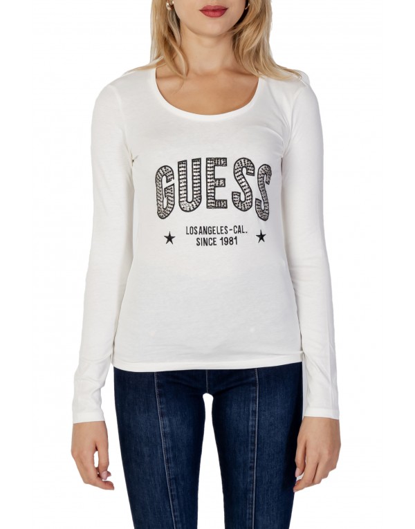 Brand: Guess Gender: Women Type: T-shirts Season: Fall/Winter PRODUCT DETAIL • Color: white • Pattern: print • Sleeves: long • Neckline: round neck COMPOSITION AND MATERIAL • Composition: -95% cotton -5% lycra