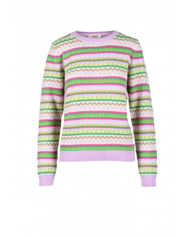 Brand: Kontatto Gender: Women Type: Knitwear Season: Fall/Winter PRODUCT DETAIL • Color: multicolor • Pattern: geometric • Fastening: slip on • Sleeves: long • Neckline: round neck COMPOSITION AND MATERIAL • Composition: -5% cashmere -30% wool -35% polyamide -30% viscose • Washing: handwash