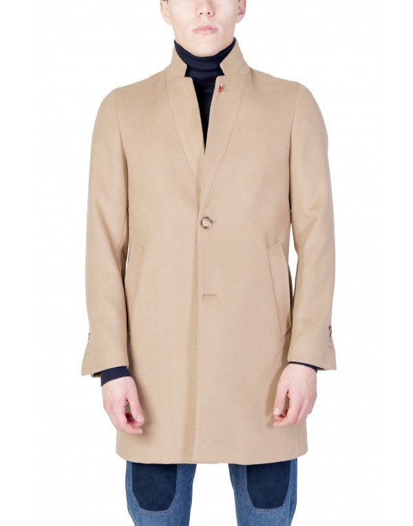 Brand: Mulish Gender: Men Type: Coats Season: Fall/Winter PRODUCT DETAIL • Color: beige • Fastening: buttons • Sleeves: long • Neckline: v-neck • Collar: lapel collar COMPOSITION AND MATERIAL • Composition: -1% lycra -94% polyester -5% viscose • Washing: dry cleaned