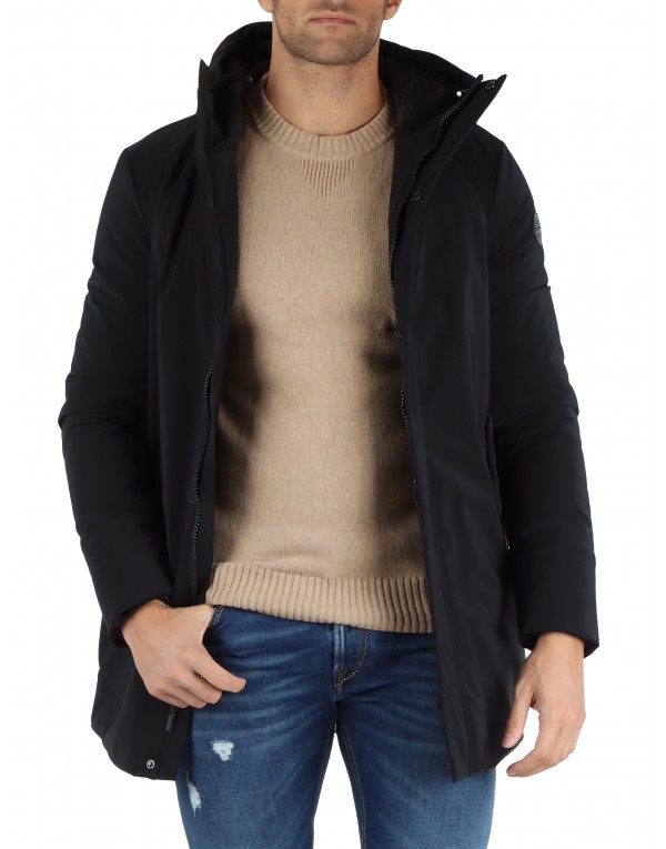 non detachable hood with drawstring