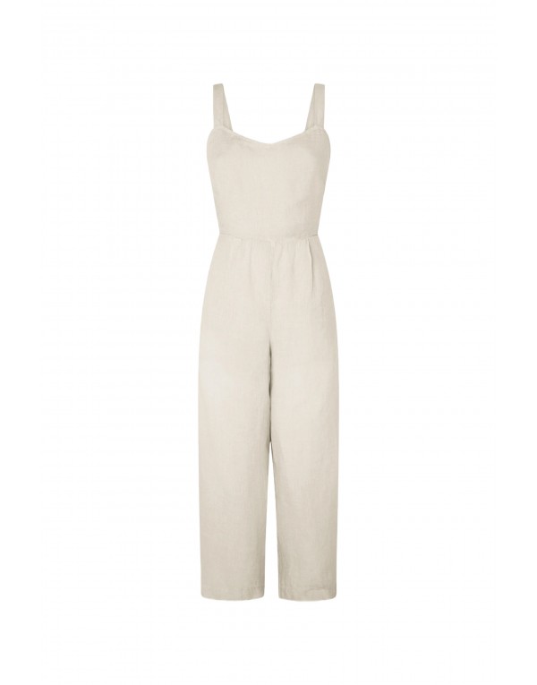 Brand: Pepe Jeans Gender: Women Type: Jumpsuits Season: Spring/Summer PRODUCT DETAIL • Color: beige • Pattern: plain • Fastening: laces • Sleeves: straps • Neckline: v-neck COMPOSITION AND MATERIAL • Composition: -45% cotton -55% linen • Washing: machine wash at 30°