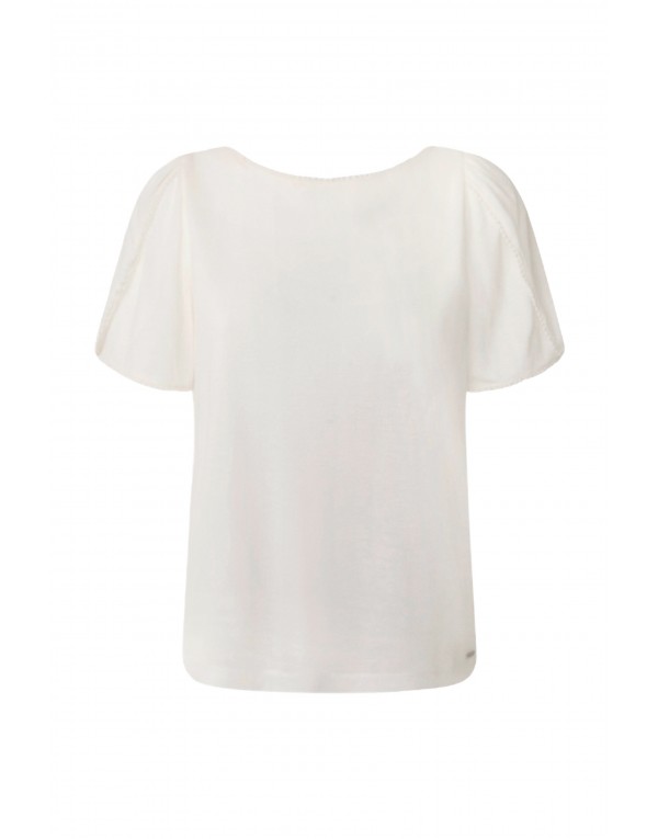 Brand: Pepe Jeans Gender: Women Type: T-shirts Season: Spring/Summer PRODUCT DETAIL • Color: white • Pattern: plain • Sleeves: short • Neckline: round neck COMPOSITION AND MATERIAL • Composition: -38% polyester -62% viscose • Washing: machine wash at 30°