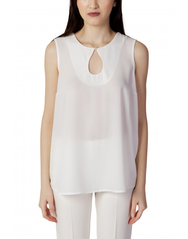 Brand: Sandro Ferrone Gender: Women Type: Blouse Season: Spring/Summer PRODUCT DETAIL • Color: white • Sleeves: sleeveless • Neckline: round neck COMPOSITION AND MATERIAL • Composition: -100% polyester • Washing: machine wash at 30°