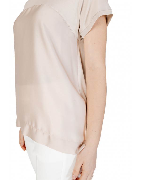 Brand: Sandro Ferrone Gender: Women Type: T-shirts Season: Spring/Summer PRODUCT DETAIL • Color: beige • Sleeves: short • Neckline: round neck COMPOSITION AND MATERIAL • Composition: -4% elastane -96% viscose • Washing: machine wash at 30°